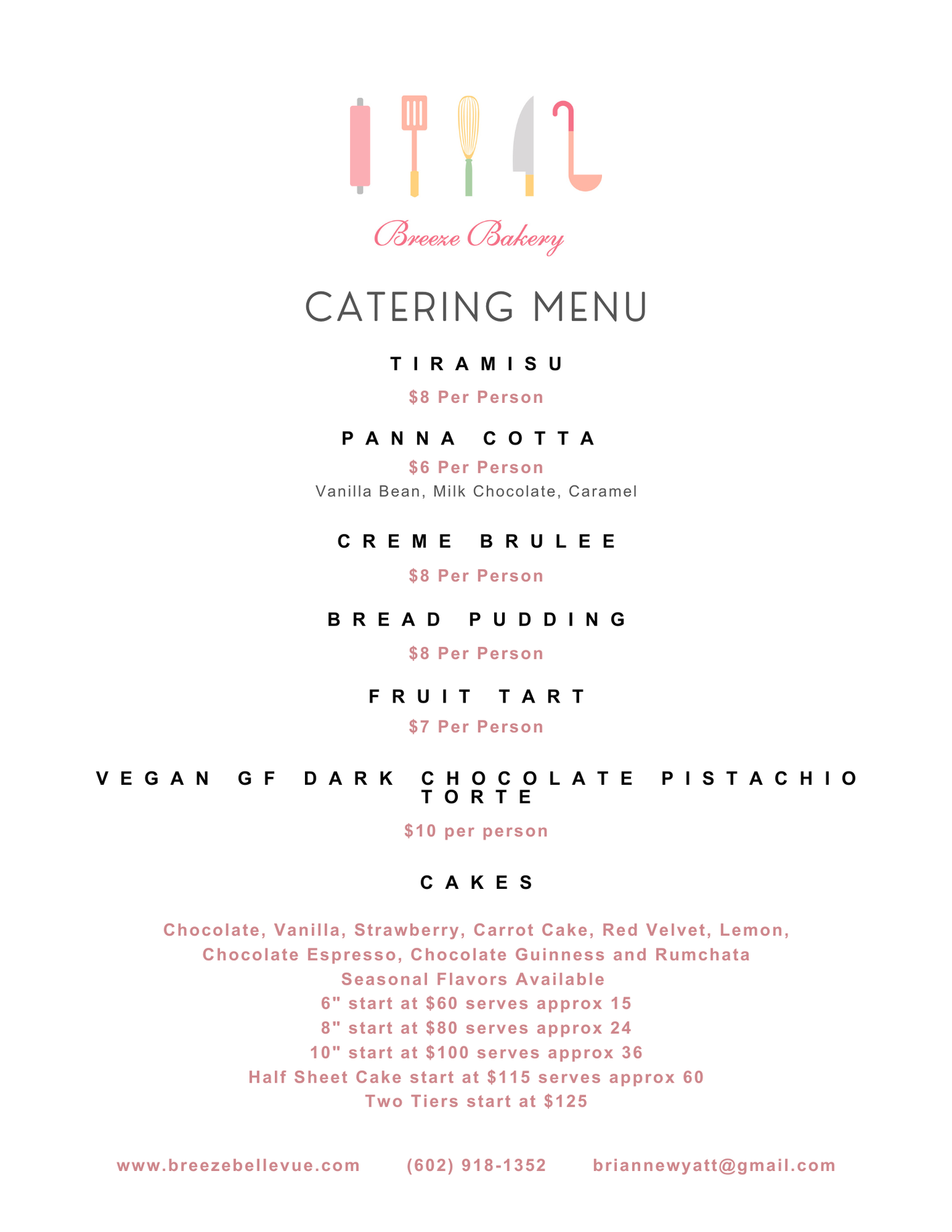 From farm to table dinners, weddings, art gallery openings and more, Breeze would love to be a part of your celebration. While we specialize in cheesecakes and pies, no dessert is out of reach. Just fill out the contact form below, and we'll get right to work creating a custom menu for your next event to fit your unique vision.